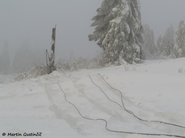Vetromer na vremenski postaji Zaplana, ki je ob žledu prav tako utrpela poškodbe.
