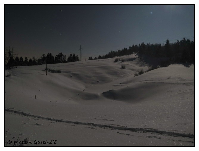 MraziÅ¡Äe DvojÄek v meseÄini – slika je nastala 7. februarja malo pred polnoÄjo, v Äasu temperature -23 °C v mraziÅ¡Äu in okoli -10 °C nad njim.