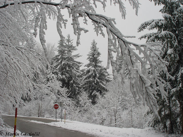 Sneg je bil težek in posamezne veje so se krepko nagibale.