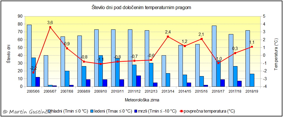 Temperaturni podatki za meteorološko zimo 2018/2019.
