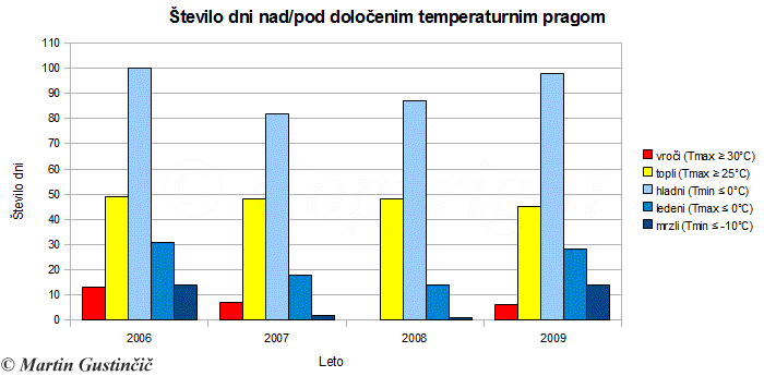 Å tevilo nekaterih znaÄilnih meteoroloÅ¡kih dni leta 2009 v primerjavi s preteklimi leti.