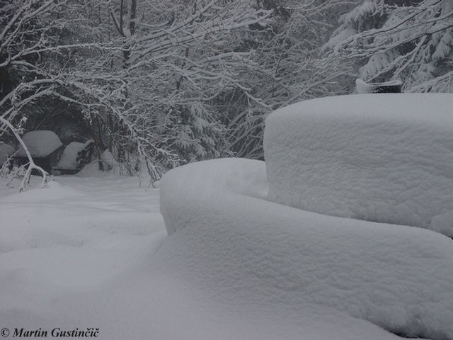 Snežna odeja je bila na dvignjenih predmetih, kjer v januarju na sesedanje snega niso vplivala topla tla, debela okoli 60cm.