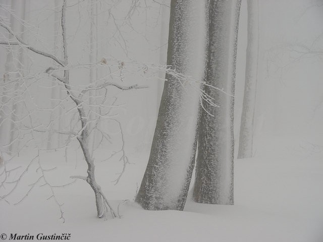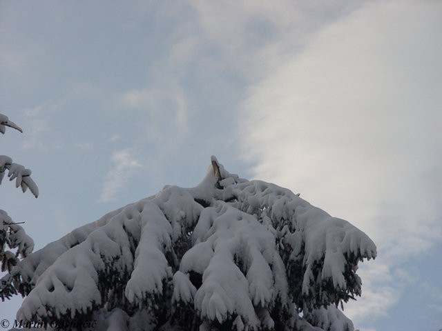 Zaradi moÄnejÅ¡ega vetra ob sneženju je bilo drevje na Ulovki Å¡e izraziteje zasneženo.