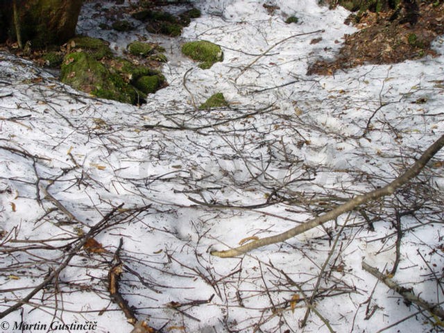 V zimi 2003/2004 je bilo v mraziÅ¡Äni vrtaÄi pri Dolinci približno 150 dni s snežno odejo (v Ljubljani 62 dni, KoÄevju 71, Postojni 54, RateÄah-Planici 139). Kako sem priÅ¡el do omenjenega podatka? To omogoÄa zanesljiva snežna odeja v omenjeni kotanji. Po sneženju 23.decembra 2003 je snežna odeja neprekinjeno ležala vse do 1.maja 2004, priÅ¡teti pa je bilo treba le Å¡e nekaj dni s snežno odejo oktobra in novembra. Precej težje pa je ugotoviti Å¡tevilo dni s snežno odejo za Zaplano, saj se je sneg zunaj mraziÅ¡Ä velikokrat stalil in ponovno zapadel. V globoki kotanji vzhodno od Jezerca je sneg ležal Å¡e nekoliko dlje kot v zgoraj omenjeni kotanji, vendar meritve snega tam niso mogoÄe zaradi poraÅ¡Äenega in neravnega terena. Na podlagi fotografij se zdi, da gre za zadnji spomladanski „gnojâ€, vendar je bila snežna odeja trda in veÄino Äasa pomrznjena. V kotanji na drugi fotografiji je bilo 2.maja sredi dneva pri tleh -0,4°C, medtem ko je bilo v prosti okolici tudi do 18°C.