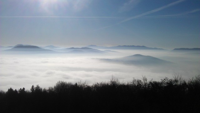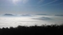 Pogled z Zgornje Zaplane na meglo, ki je v prvih nekaj dneh z vzhoda dotekala samo preko naselij Prezid, Jerinov griÄ in Ograje. Nad meglo je segala Strmica (625 m).