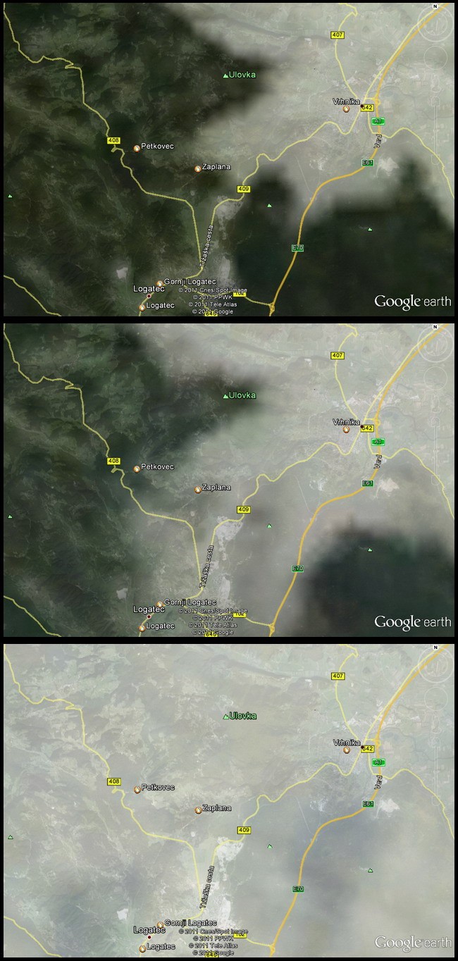 Gibanje meglenega pokrova po višini, in sicer 19. novembra (580 m), 22. novembra (650 m) in 23. novembra (1000 m).