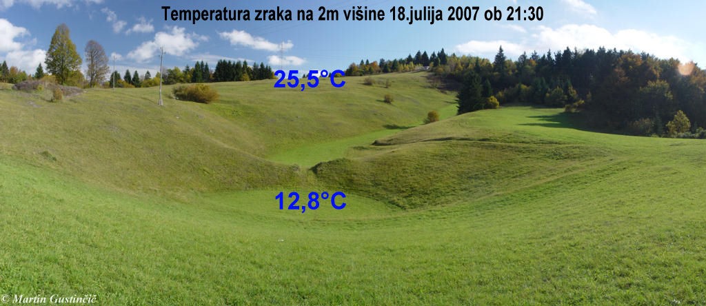 Nad mraziÅ¡Äem DvojÄek je temperature viÅ¡al zahodni veter, medtem ko je bilo le nekaj metrov nižje ob povsem mirnem ozraÄju precej hladneje.