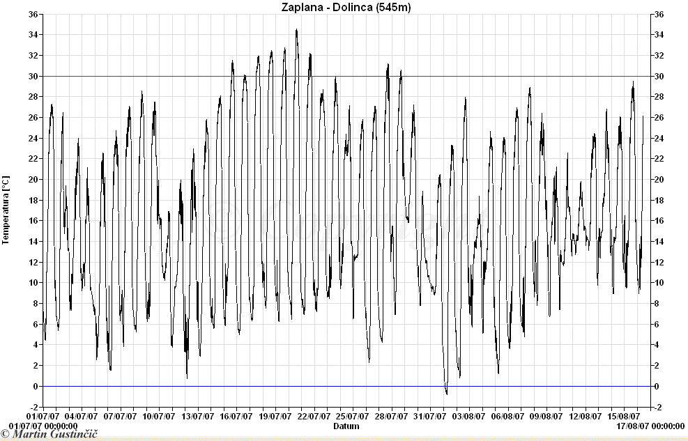 Za poletje 2007 so bile znaÄilne zelo visoke, kot tudi zelo nizke temperature. Na meteoroloÅ¡ki postaji Zaplana je bila v slabem mesecu dni najprej izmerjena najnižja julijska temperatura (4,7°C 5.julija), nato je bil vroÄinski val (34,1°C 20.julija), 1.avgusta pa je bila spet izmerjena ena od najnižjih avgustovskih temperatur doslej (6,6°C).