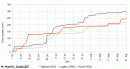 Letošnja kumulativa padavin na Zaplani v primerjavi s kumulativo na dveh ARSO padavinskih postajah v poletju 2003.
