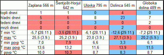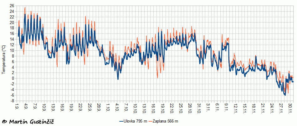 Temperaturna inverzija (Zaplana ponoÄi hladnejÅ¡a od Ulovke) je bila redka zlasti v novembru.