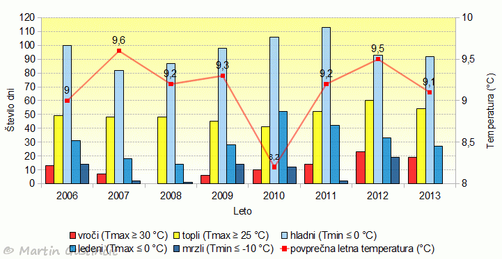 Å tevilo znaÄilnih meteoroloÅ¡kih dni v letu 2013 v primerjavi s preteklimi leti.