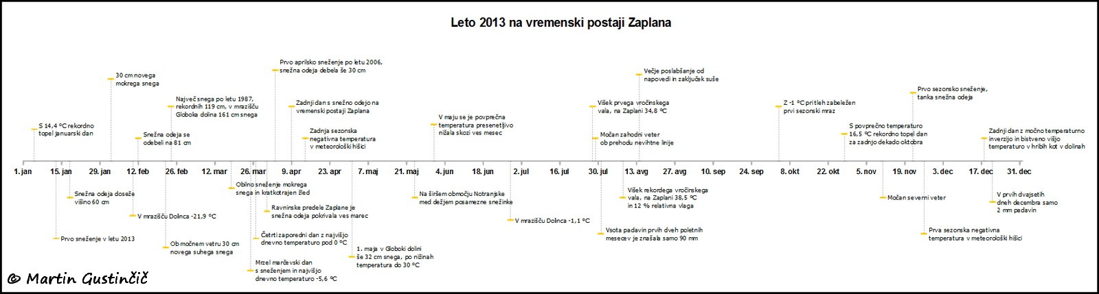 Časovni trak – leto 2013 na vremenski postaji Zaplana.
