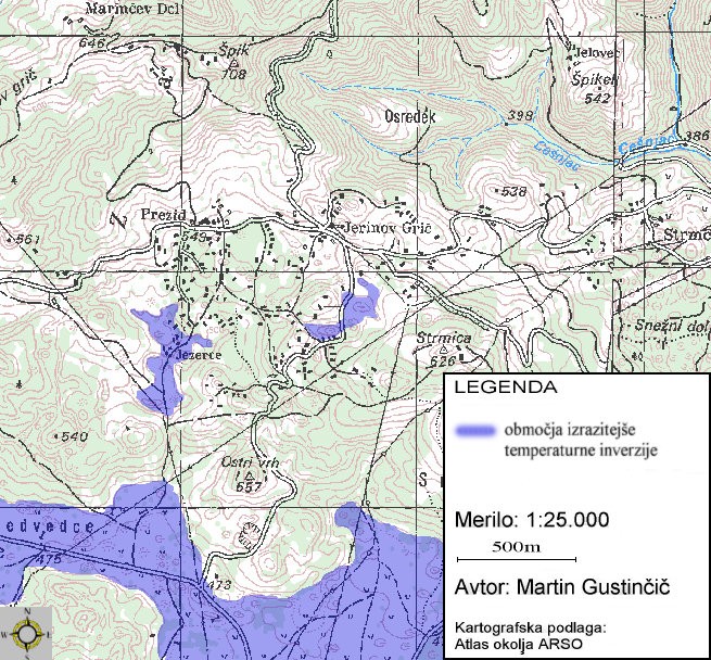– dvignjena lega glede na Ljubljansko kotlino, manjÅ¡a verjetnost, da dež zmrzne že v ozraÄju.