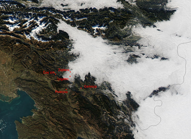 Na Planini nad Vrhniko je veliko ciklonalne poboÄne megle, obmoÄje je pogosto zavito v nizke oblake.