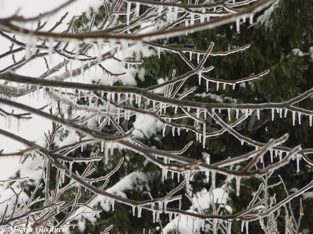 Žled na Zaplani 24.decembra 2007; sprva je padal podhlajen dež, ki je zmrzoval, nato zrmznjen dež (na fotografiji), ki ni povzroÄal žleda. Z ohladitvijo v viÅ¡inah je priÄelo snežiti.